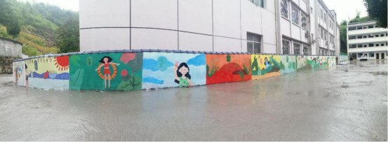 結營儀式後,支教老師帶領學生及學生家長前往作品展覽區參觀了孩子們的作品和藝術牆繪。藝術牆繪由支教老師與孩子們共同繪制,一面又一面的文化圈代表着77779193永利專業特色與蘆池灣小學的特點,更是老師們與孩子們情感的凝聚。